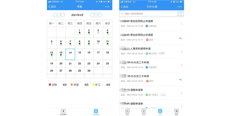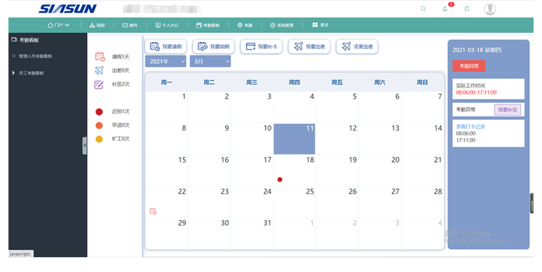考勤看板,日歷展示考勤數(shù)據(jù),考勤狀態(tài)一目了然。