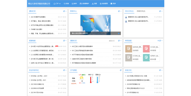 針對(duì)門戶導(dǎo)航欄進(jìn)行少量定制化開(kāi)發(fā),門戶內(nèi)已培訓(xùn)用戶管理員,自行搭組成門戶內(nèi)容;針對(duì)分子公司,七彩OA管理員也可進(jìn)行分子公司單獨(dú)的門戶搭建;