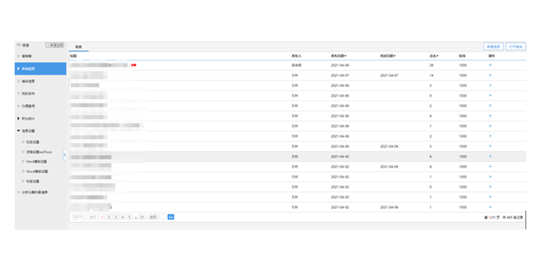 通知、規(guī)章制度、部門制度、通報(bào)等業(yè)務(wù)共計(jì)搭建43個(gè)信息欄目,三個(gè)自定義信息頻道;(研發(fā)技術(shù)平臺(tái),數(shù)據(jù)共享平臺(tái)等)主要應(yīng)用于七彩化學(xué)內(nèi)部信息共享,規(guī)章制度發(fā)布,通知通告發(fā)布。將管理權(quán)限分放至用戶,用戶可自行維護(hù)信息欄目??刹榭慈思翱删S護(hù)人;