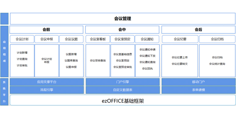 會議管理建立會議計劃申報,議題的申報,會議室的預(yù)定、會議通知下發(fā)、會議紀要上傳,最終會議歸檔及會議統(tǒng)計的一體化管理模式,實現(xiàn)從會前、會中、會后業(yè)務(wù)的緊密銜接。