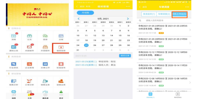 同步PC端待辦、值班管理、文案校對、CA認證證書綁定、會議通知、車輛管理等。