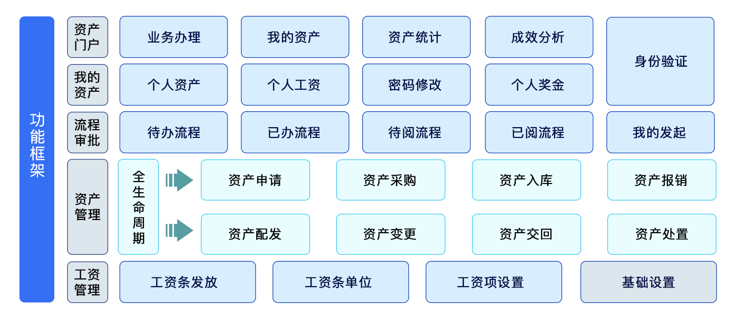 支持發(fā)起資產(chǎn)需求、配發(fā)、采購、報(bào)銷、交回、變更、處置流程。