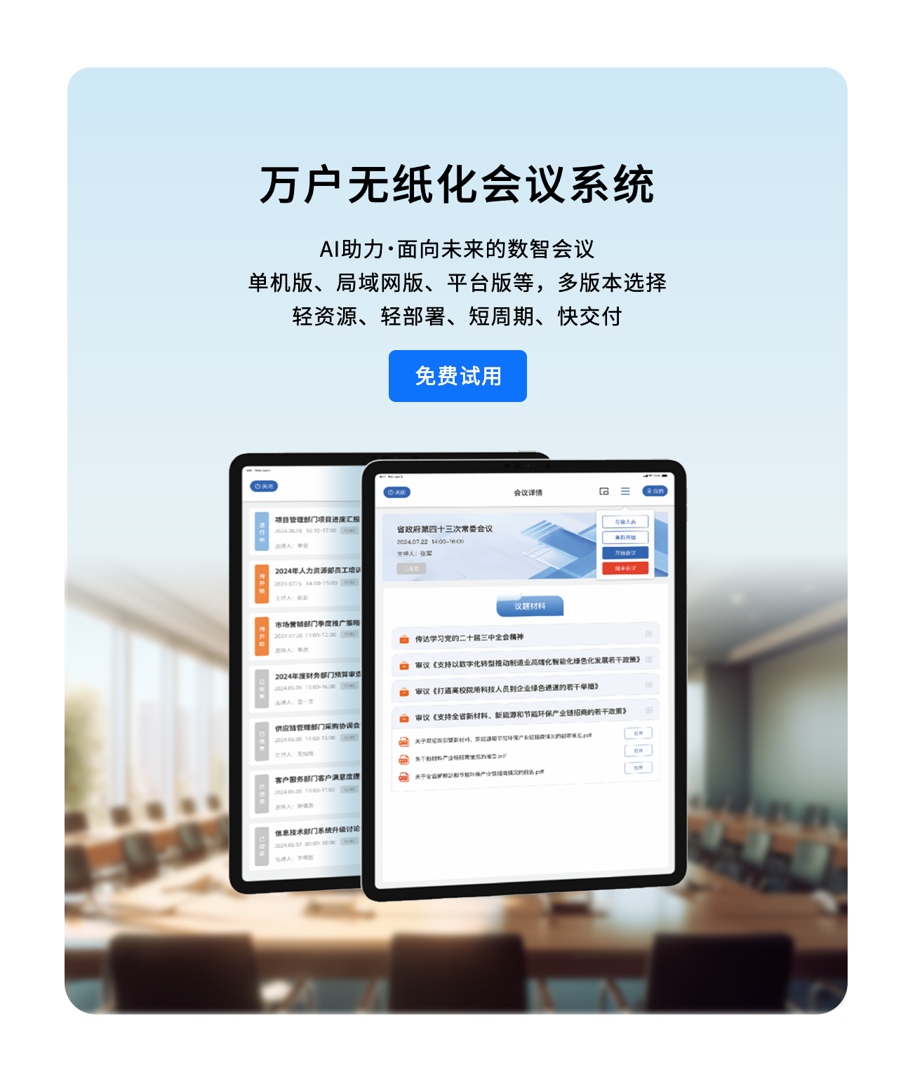 萬(wàn)戶無(wú)紙化會(huì)議管理系統(tǒng),為組織單位提供了會(huì)前、會(huì)中、會(huì)后與會(huì)議支撐的一站式解決方案,實(shí)現(xiàn)了一體化的會(huì)議服務(wù)與管理