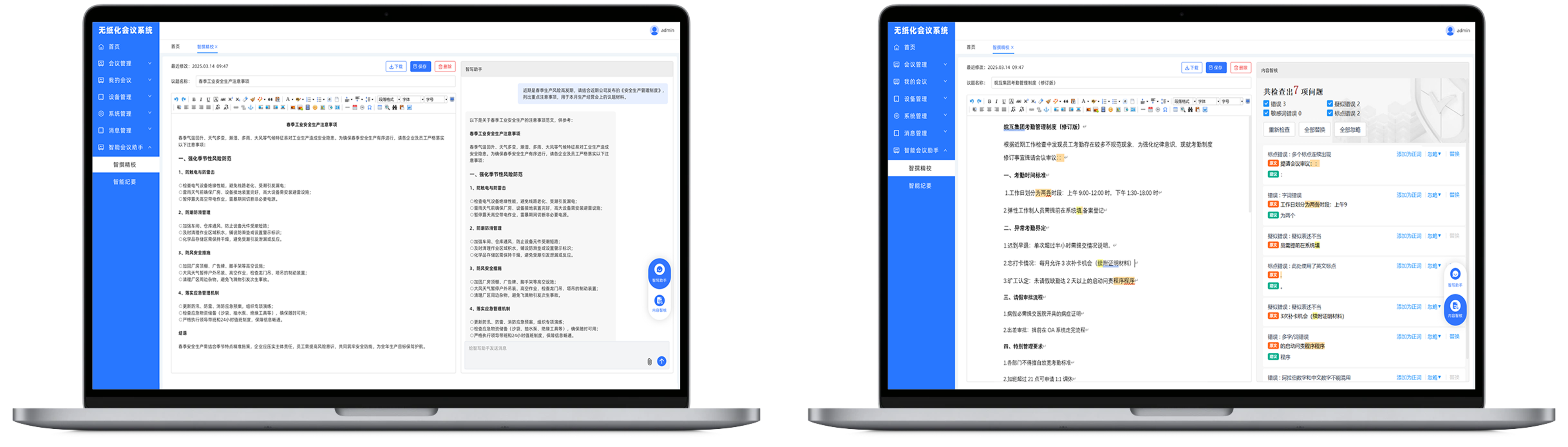 與DeepSeek、萬(wàn)相大模型深度對(duì)接,支持DeepSeek的私有化部署,智能生成議題材料,并進(jìn)行全方位的校核。實(shí)現(xiàn)會(huì)議速錄,會(huì)場(chǎng)發(fā)言邊說(shuō)邊轉(zhuǎn)寫(xiě),形成完整會(huì)議文稿。會(huì)議紀(jì)要智能生成,快速提煉觀點(diǎn),輔助會(huì)議決策。