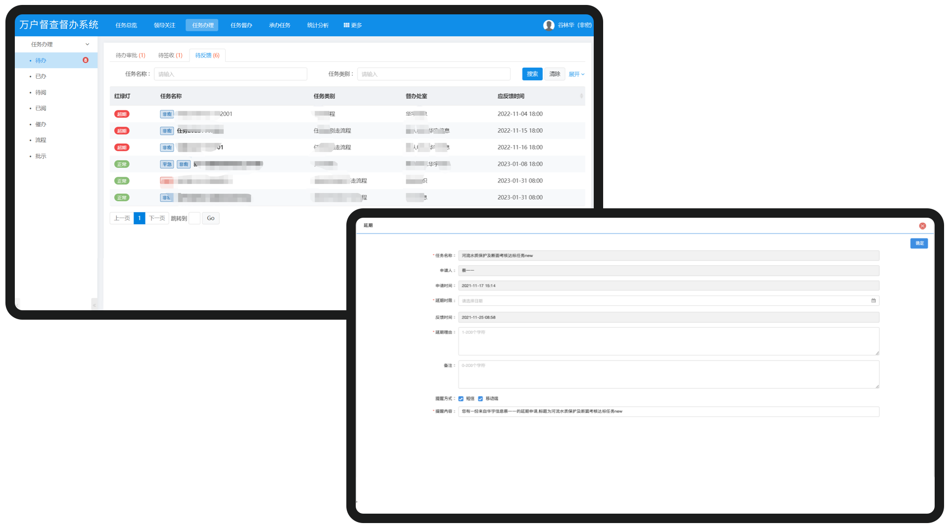 任務(wù)詳情、任務(wù)辦理情況、反饋情況、延期情況、批示情況等信息,一頁滾動(dòng)展示