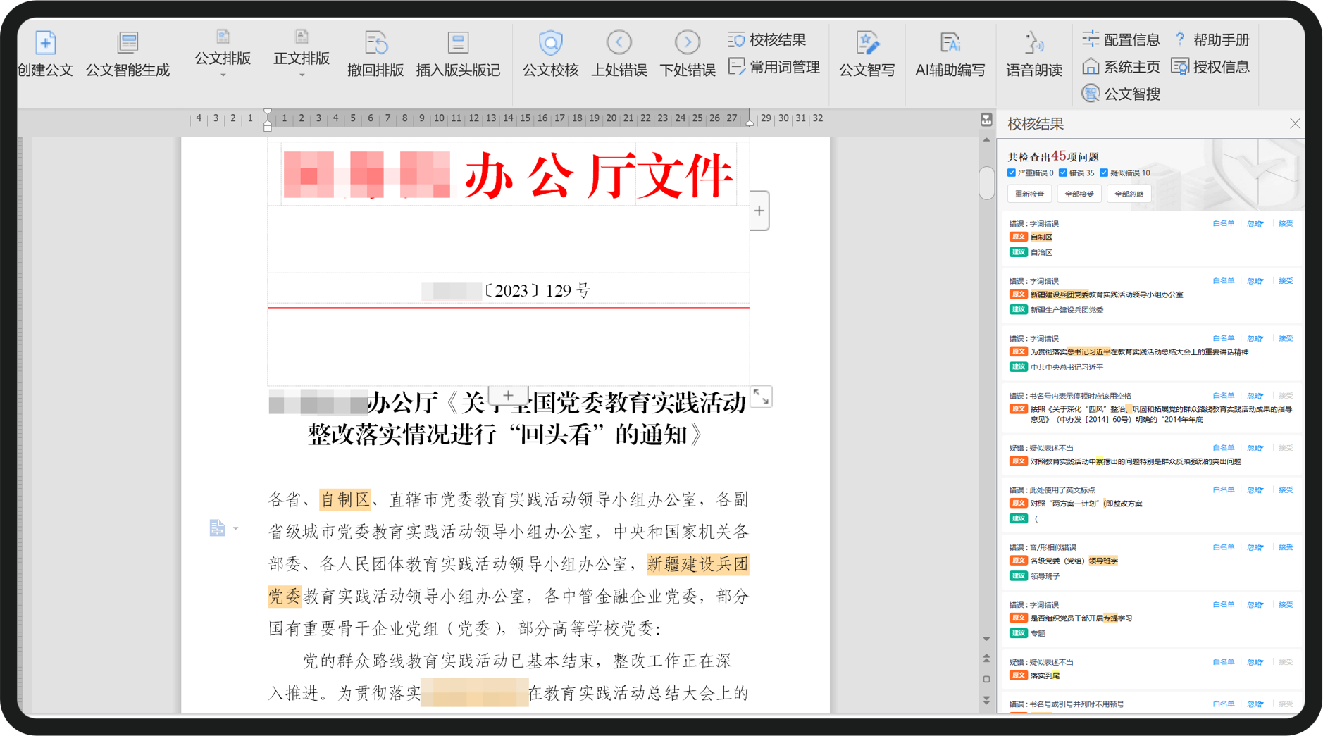 內(nèi)容及格式校核,把關(guān)內(nèi)容核查,一鍵自動(dòng)排版,避免文本錯(cuò)誤引發(fā)的安全隱患;可支持常見(jiàn)6大類(lèi)、35小類(lèi)的錯(cuò)誤,每秒5000字的識(shí)別速度,識(shí)別率高;格式要求嚴(yán)格符合國(guó)家標(biāo)準(zhǔn),排版自定義定制,上手只需1天