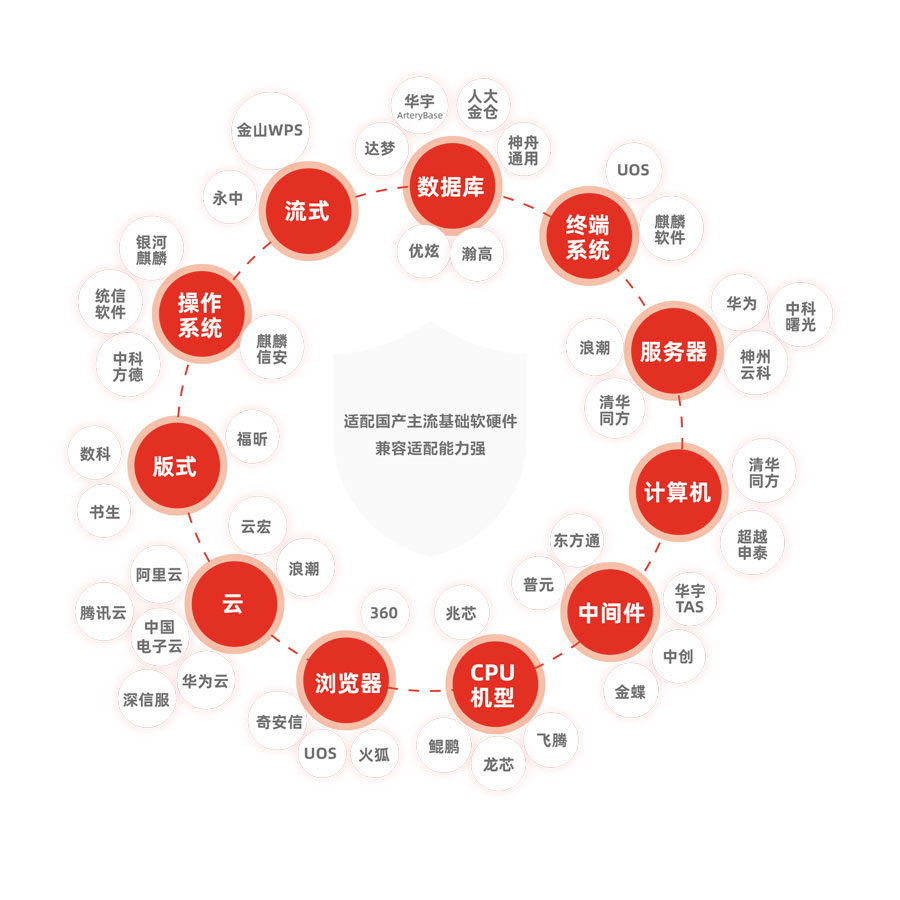 在產(chǎn)品兼容方面,與華為、騰訊、阿里、浪潮、奇安信、飛騰、統(tǒng)信、麒麟、龍芯等國內(nèi)知名廠商建立了信創(chuàng)伙伴關(guān)系,打造華宇信創(chuàng)生態(tài)+合作伙伴圈,實現(xiàn)了從芯片、操作系統(tǒng)、數(shù)據(jù)庫、行業(yè)應用、基礎(chǔ)應用到基礎(chǔ)架構(gòu)的全方位信創(chuàng)應用適配能力,從而為客戶提供性能強大、質(zhì)量優(yōu)越、服務卓越的定制化信創(chuàng)產(chǎn)品,實現(xiàn)從硬件到軟件的運行維護、升級完善的全程可控。