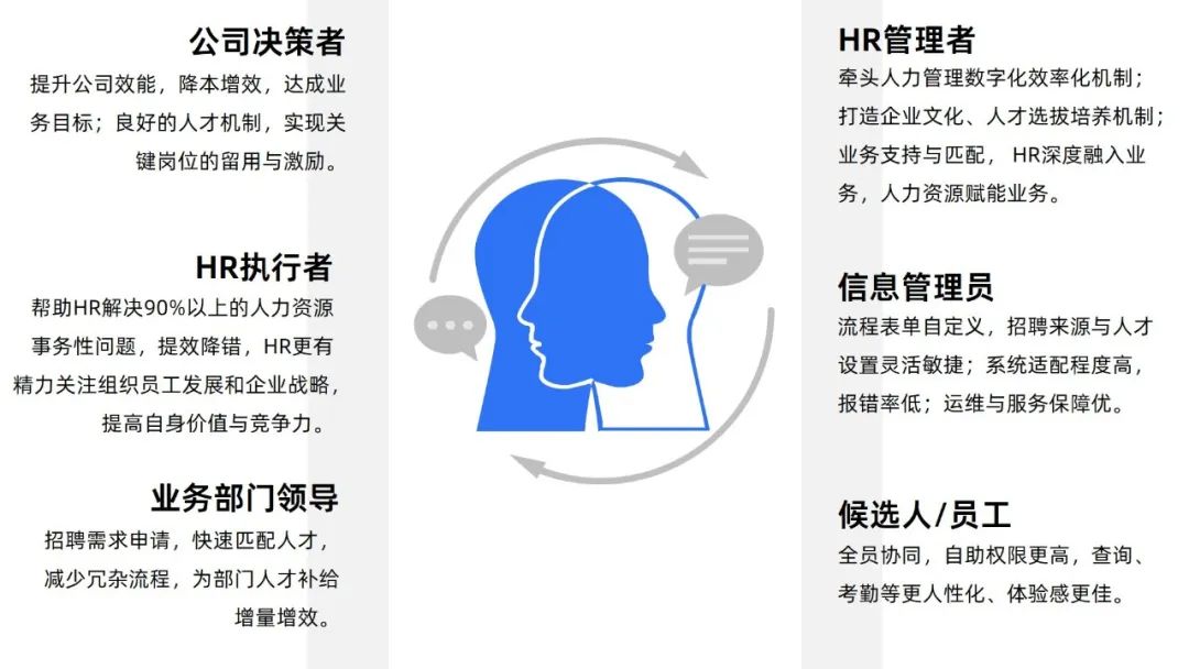 幫助HR收集維護求職者簡歷,并快速便捷的分類管理簡歷、發(fā)起相關(guān)流程,以簡歷為核心,構(gòu)建人才庫,可以快速調(diào)動資源,填補崗位需求。