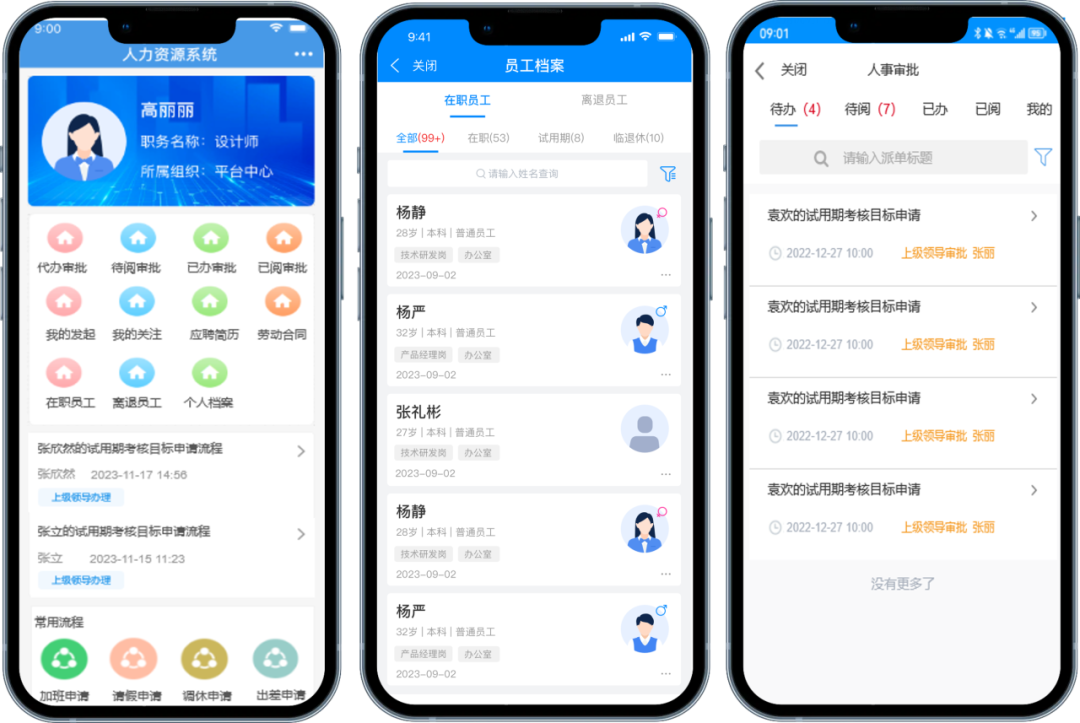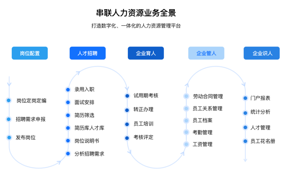 員工關(guān)系變動的全流程把控:員工入離職、試用期考核、轉(zhuǎn)正評估、員工異動、工作移交等變動,通過流程引擎,保證線上全執(zhí)行、過程全記錄。
