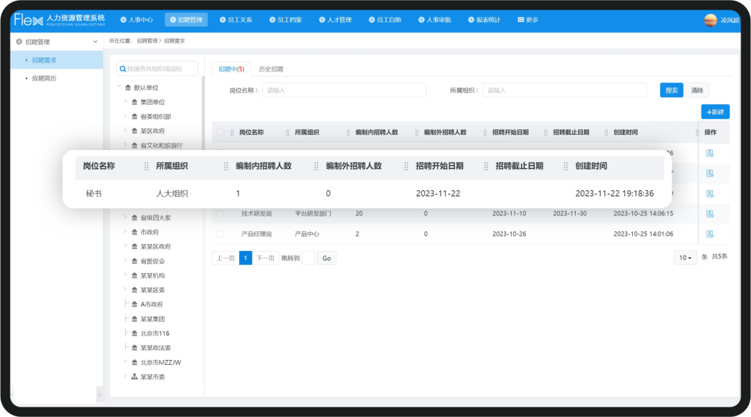 幫助企業(yè)完成崗位定崗定編、職責權(quán)限等工作,為崗位招聘提供依據(jù),HR按照崗位說明書和招聘要求發(fā)布招聘后,可查看各崗位當前與歷史的招聘情況。