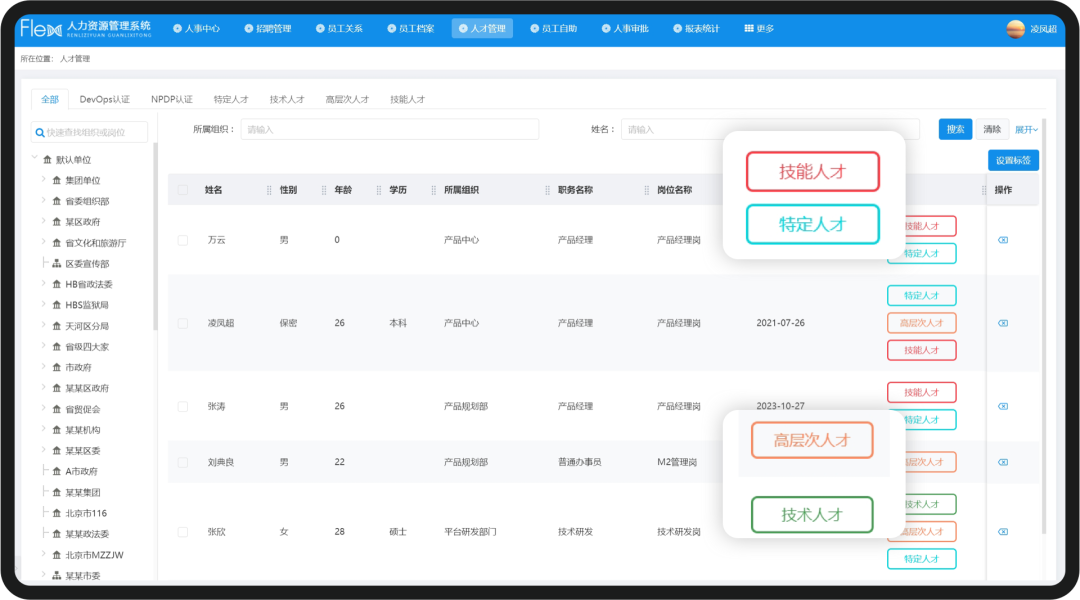 自定義設置人才標簽,將人才檔案數(shù)據(jù)化,為后續(xù)開展人才培養(yǎng)、選拔任用提供依據(jù)。